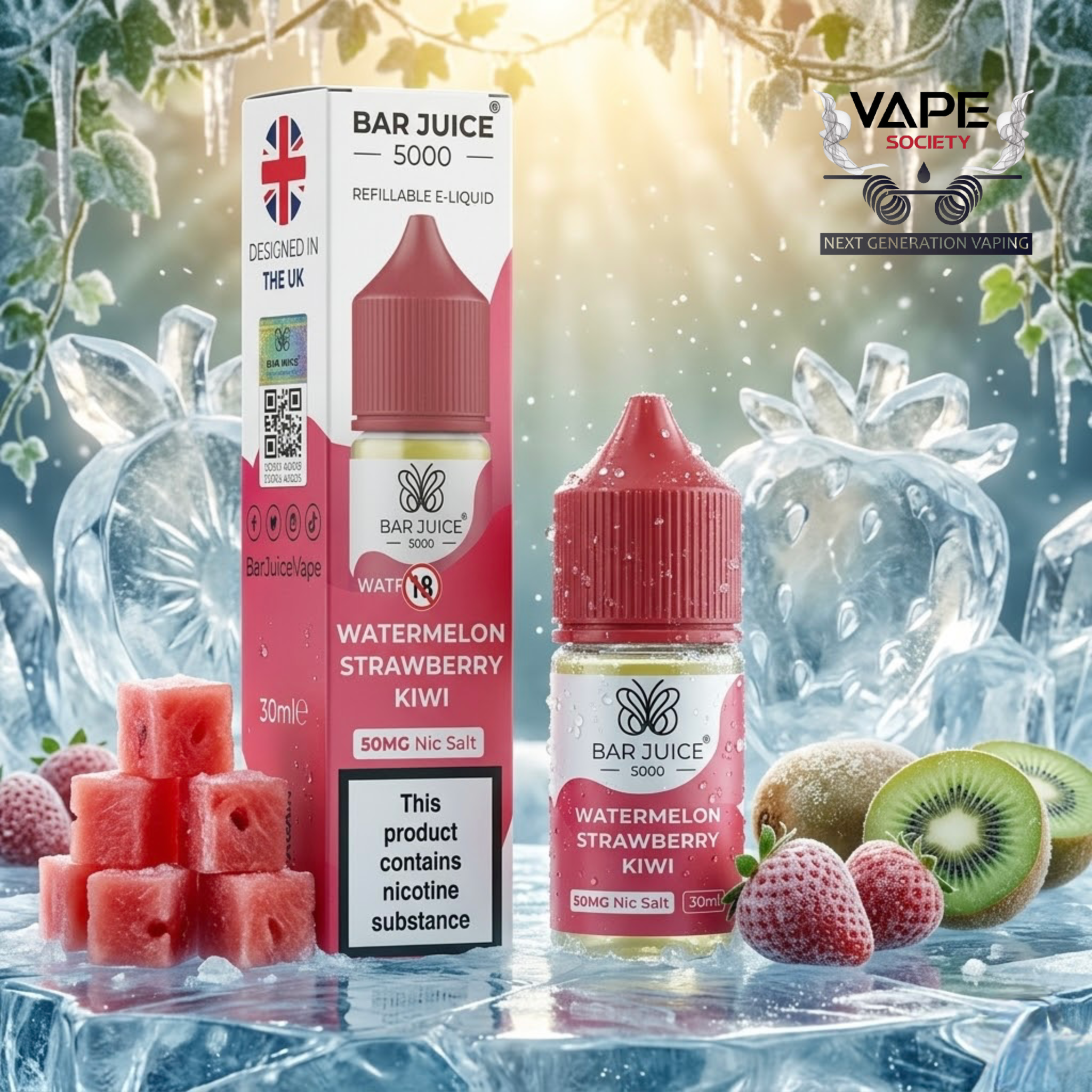 The Bar Juice 5000 Watermelon Strawberry Kiwi Ice 30ml is a masterclass in balance. It offers three distinct fruit journeys in a single puff, held together by a perfectly calibrated icy finish. Whether you are chasing the 25mg for flavor or the 50mg for a punchy hit, this liquid delivers on every promise.